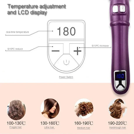 Professional Auto Rotation Electric Hair Curling Iron LCD