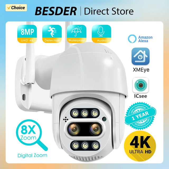 BESDER 8MP 4K PTZ IP Camera 8x Zoom
