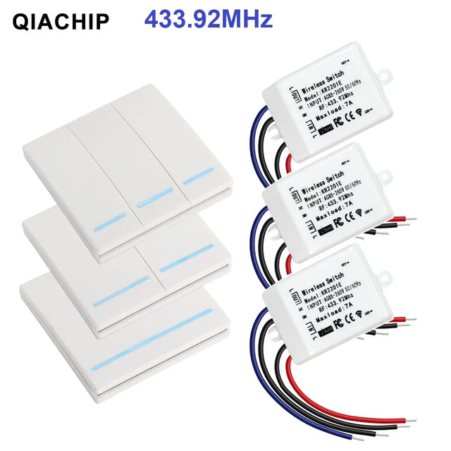 QIACHIP 433.92MHz AC 220V 1 CH Wall Panel - 1 RC and 1 Receiver / VIP Price is backordered and will ship as soon as it is back in stock.