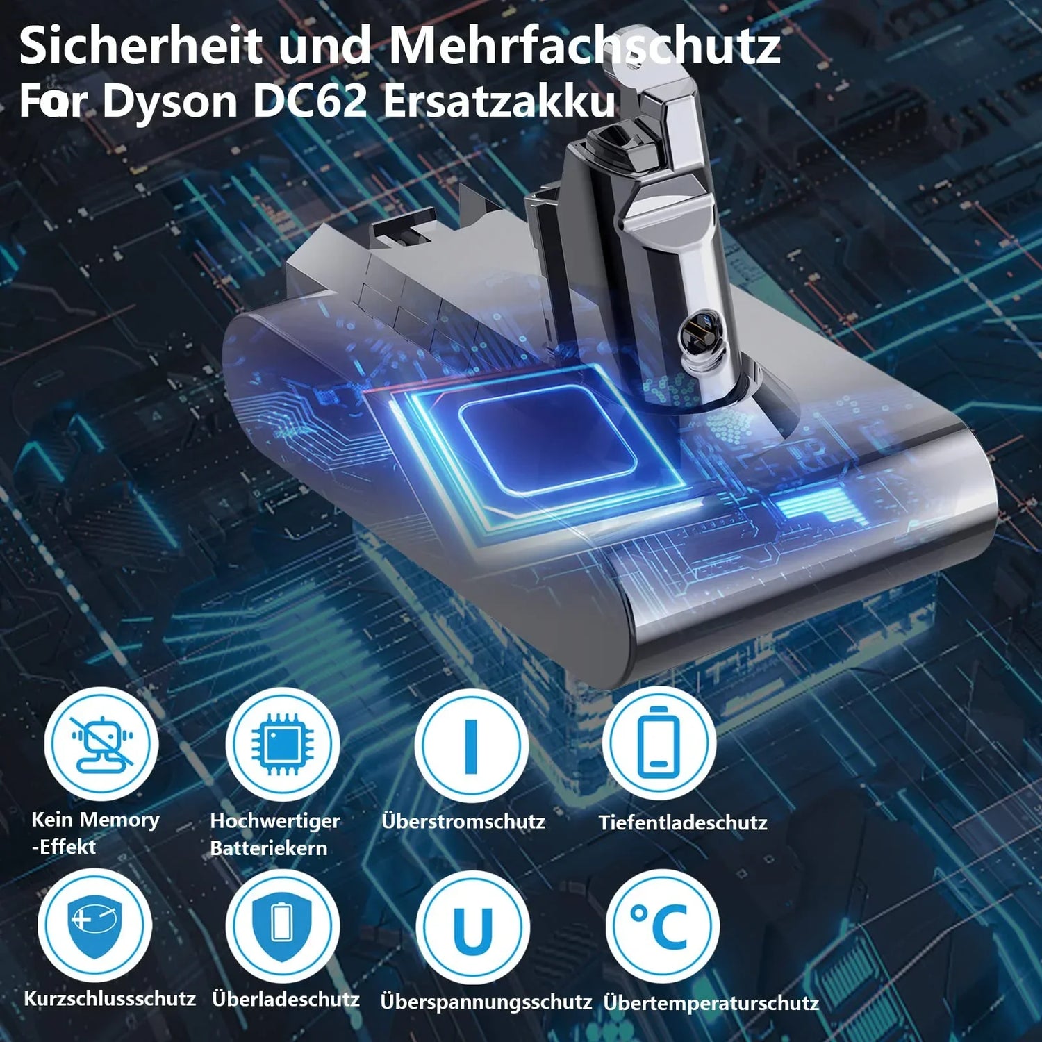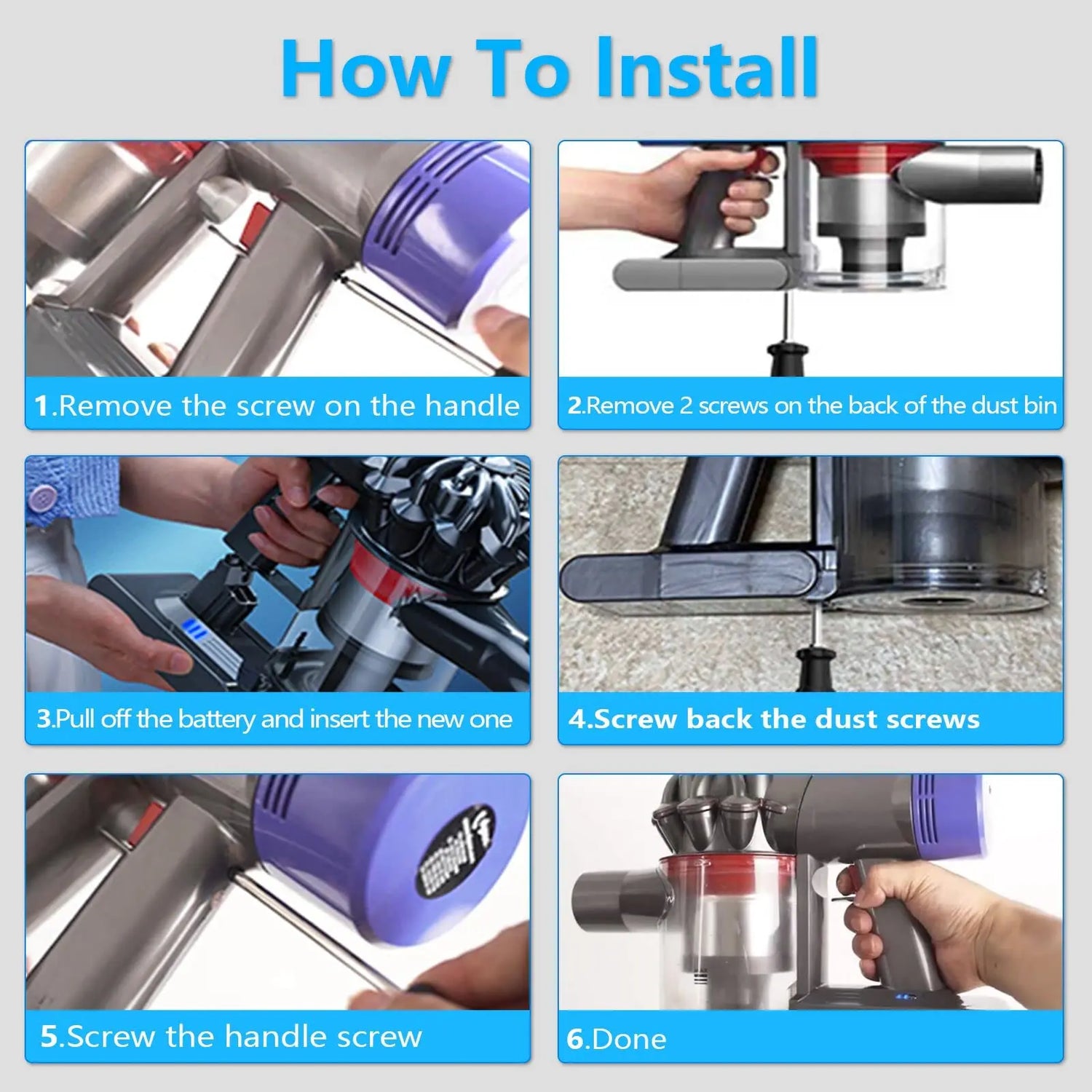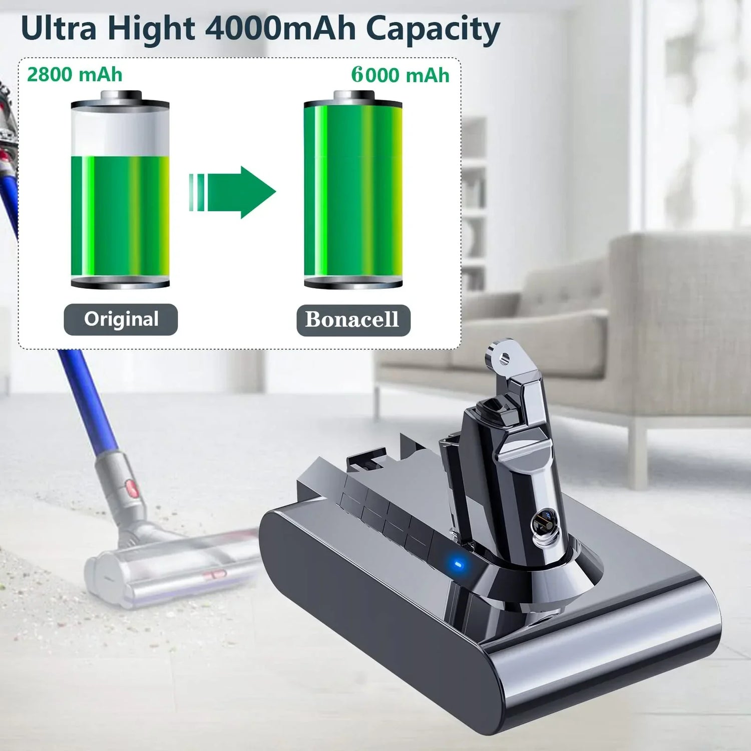 V6 Battery for Dyson, 21.6V 6000mAh Battery for
