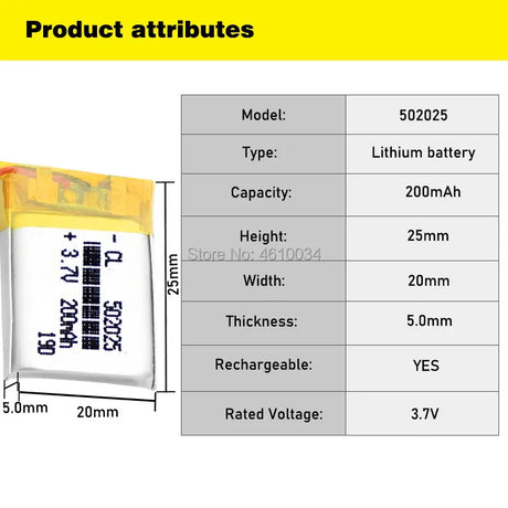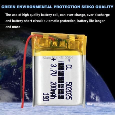Chinese 502025 3.7v lithium ion battery 200 mah