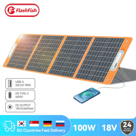 FlashFish Solar Panel 100W 18V Solar Charger with