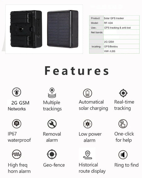Mini Solar GPS Tracker RF-V24+ Waterproof IP67 WIFI