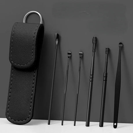 Stainless Steel Earpick Storage Leather Cover 6 Piece