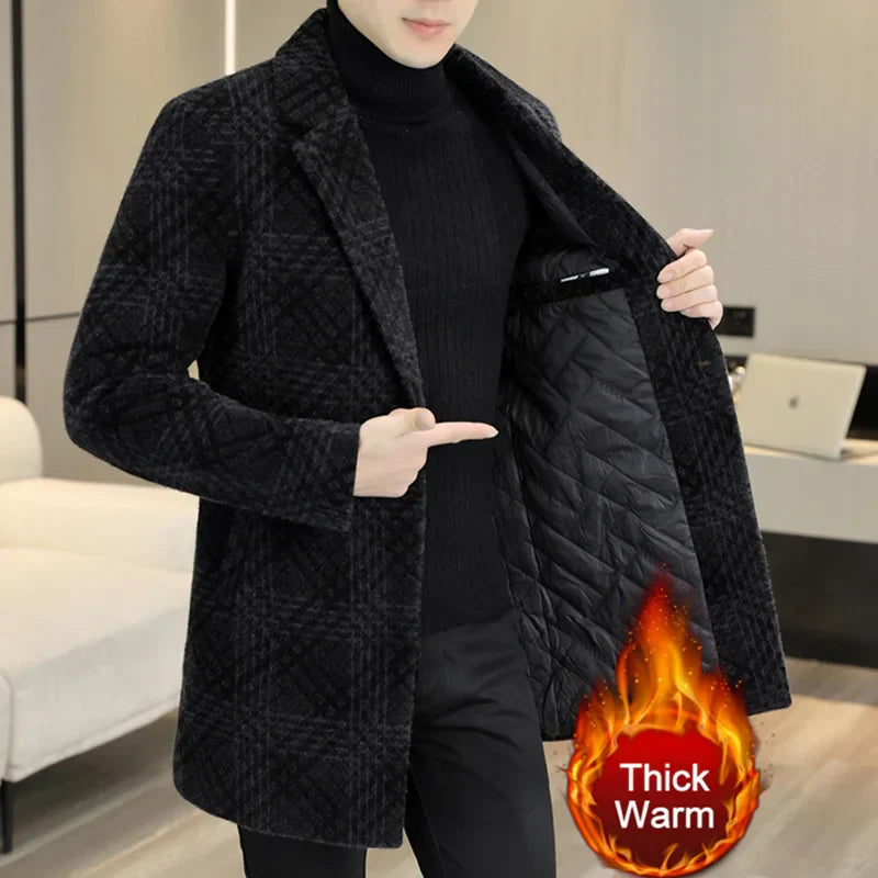 British Plaid Mens Thick Trench Coat Winter Men's