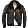 Detachable Natural Fur Collar Genuine Cowhide Men Leather