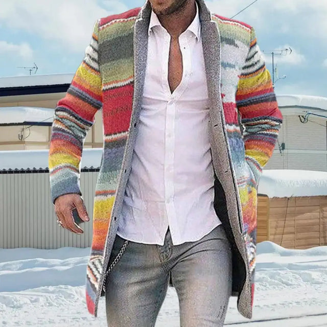 Durable Overcoat Men Skin-friendly Polyester Autumn Winter Rainbow