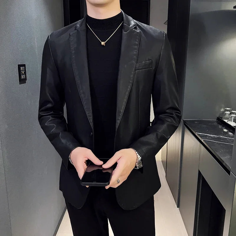 Fashion Men's Casual Leather Dress Suit Coat Male