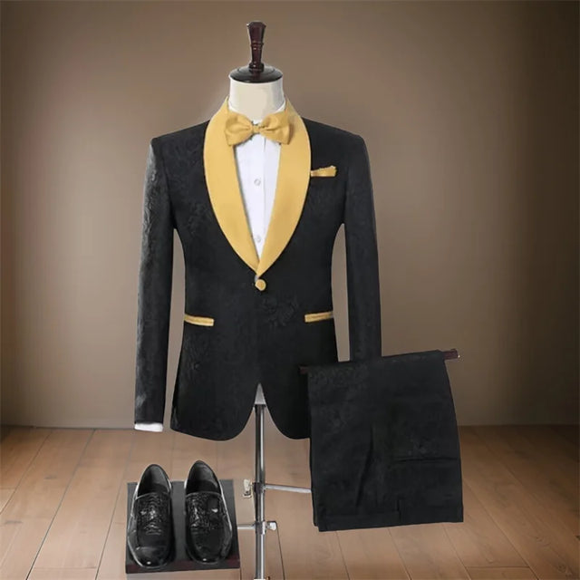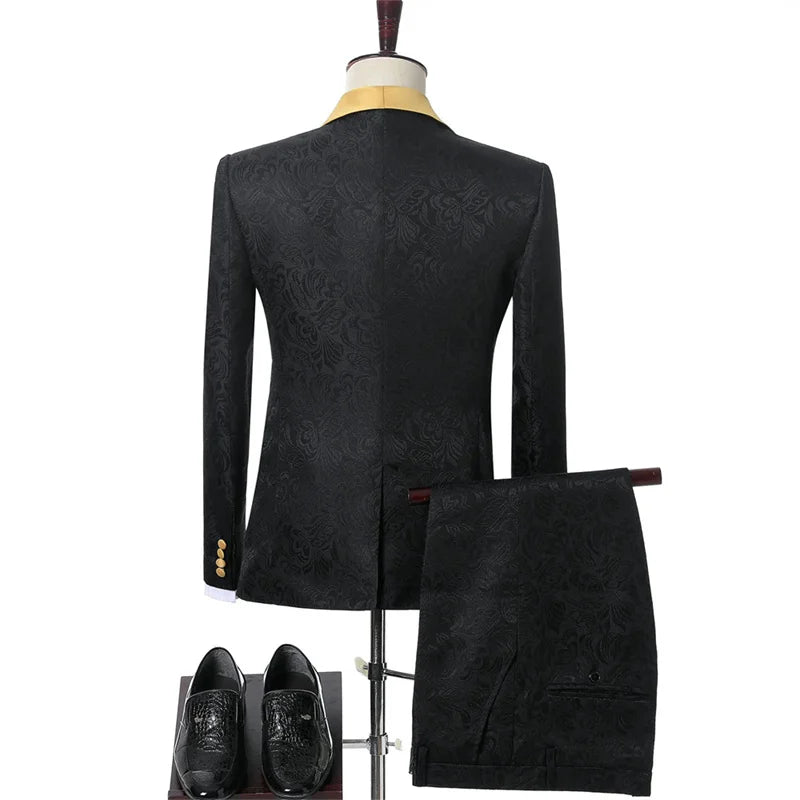 Floral Wedding Suits for Men with Gold Shawl - black / XL (EU52 or US42) / VIP Price is backordered and will ship as soon as it is back in stock.