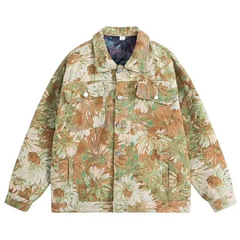 Full Flowers Jacquard Denim Jacket Men Korean Fashion - 6 / L 50-60kg / VIP Price is backordered and will ship as soon as it is back in stock.