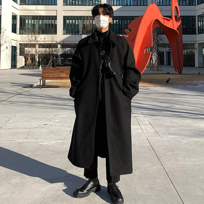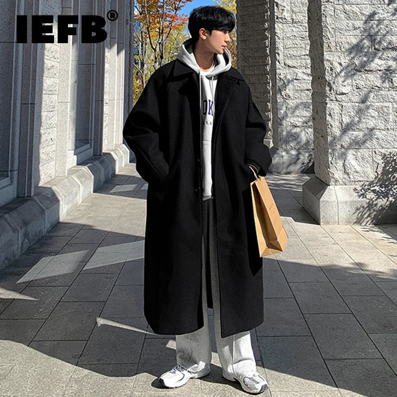 IEFB Men's Woolen Long Coat Autumn Winter High - Black / Asian Size M / VIP Price is backordered and will ship as soon as it is back in stock.