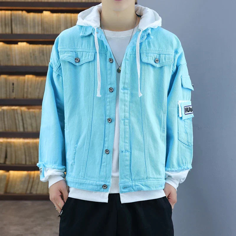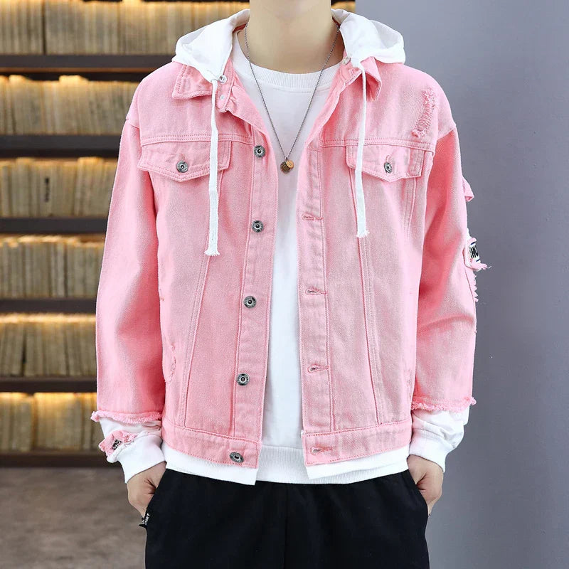 Men Autumn Hooded Men Jean Jackets Pink Cotton