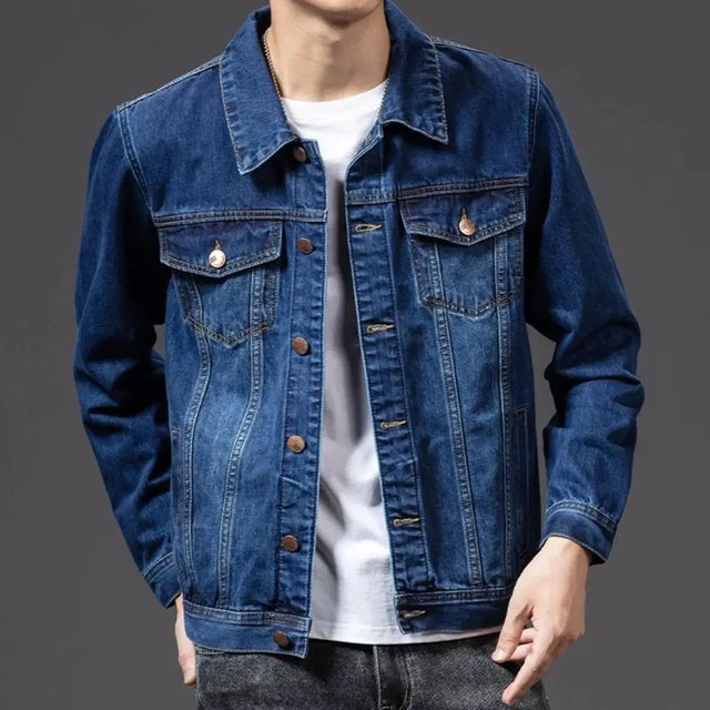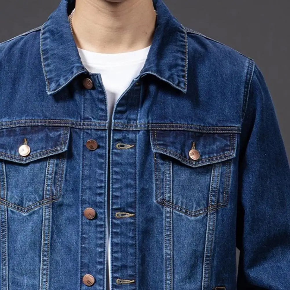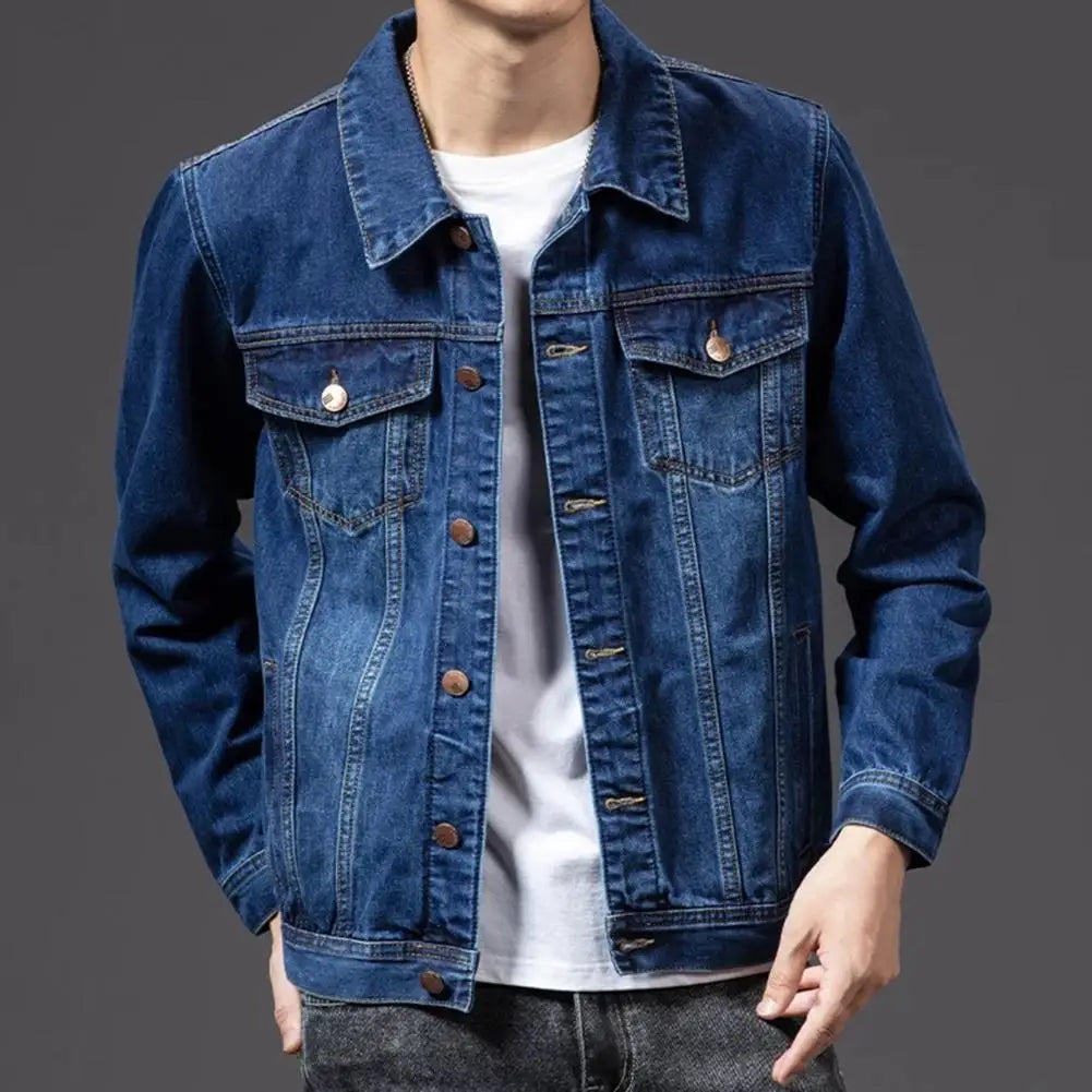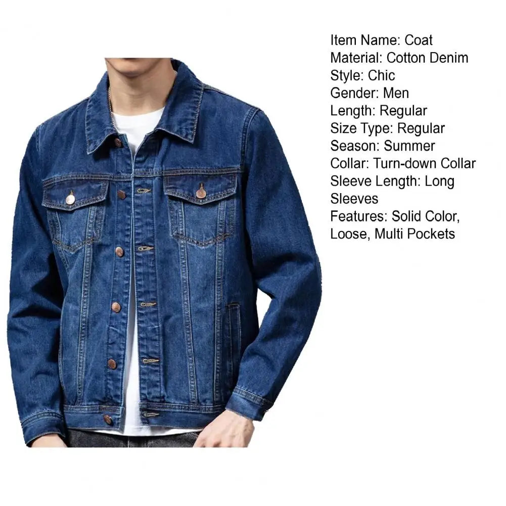Men Denim Jacket Long Sleeves Multi Pockets Lapel