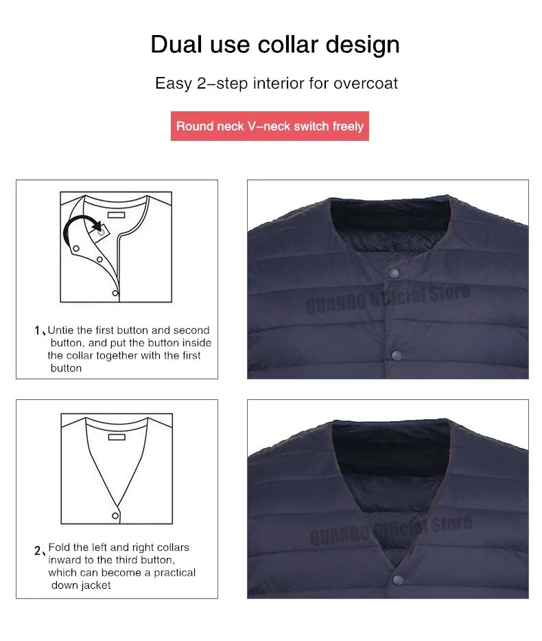 Men's Liner Duck Down Jacket O-neck Variable V-neck