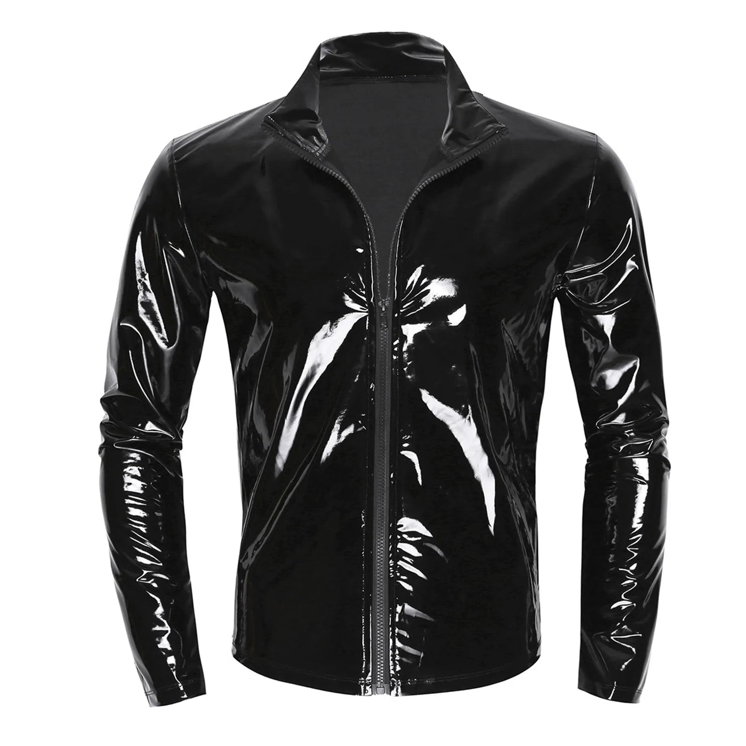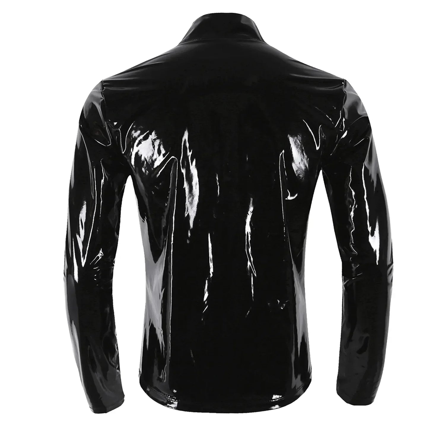 Men Wet Look Patent Leather Coat Long Sleeve