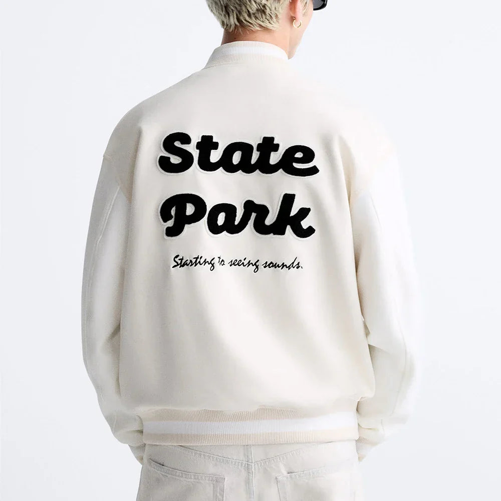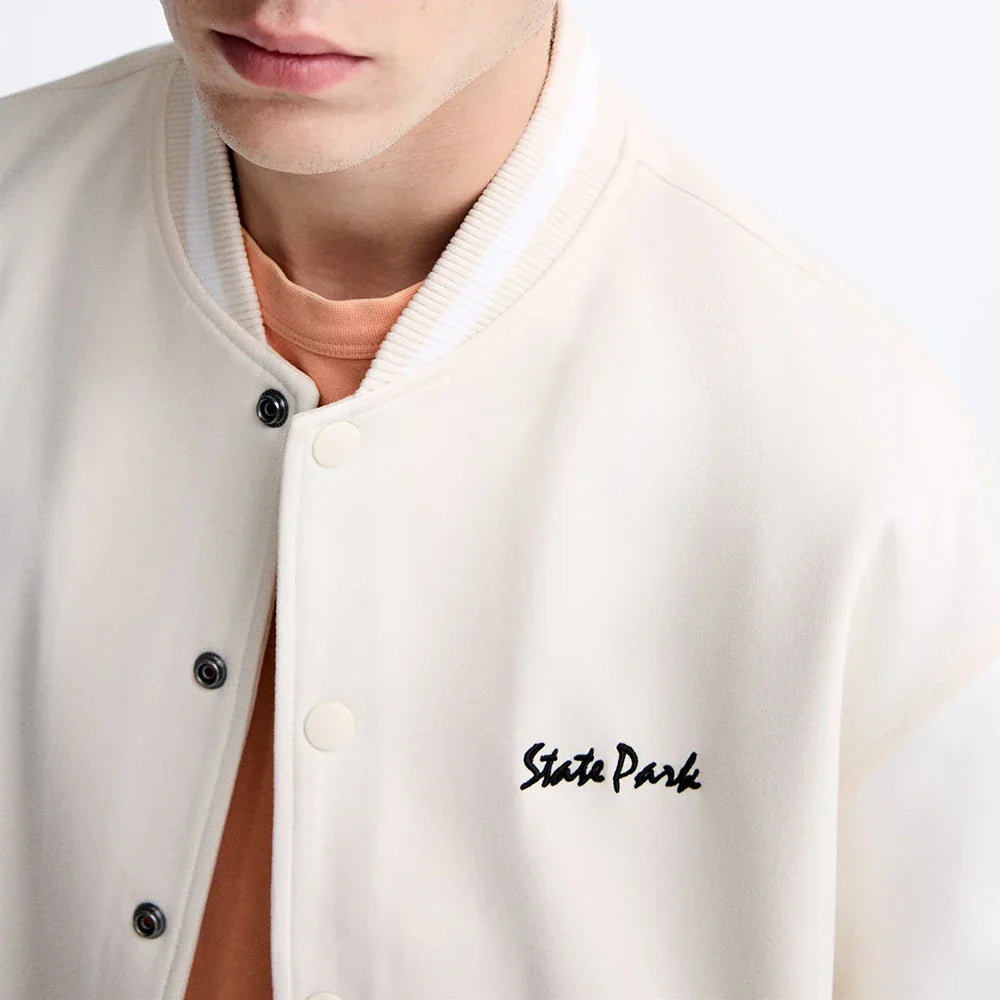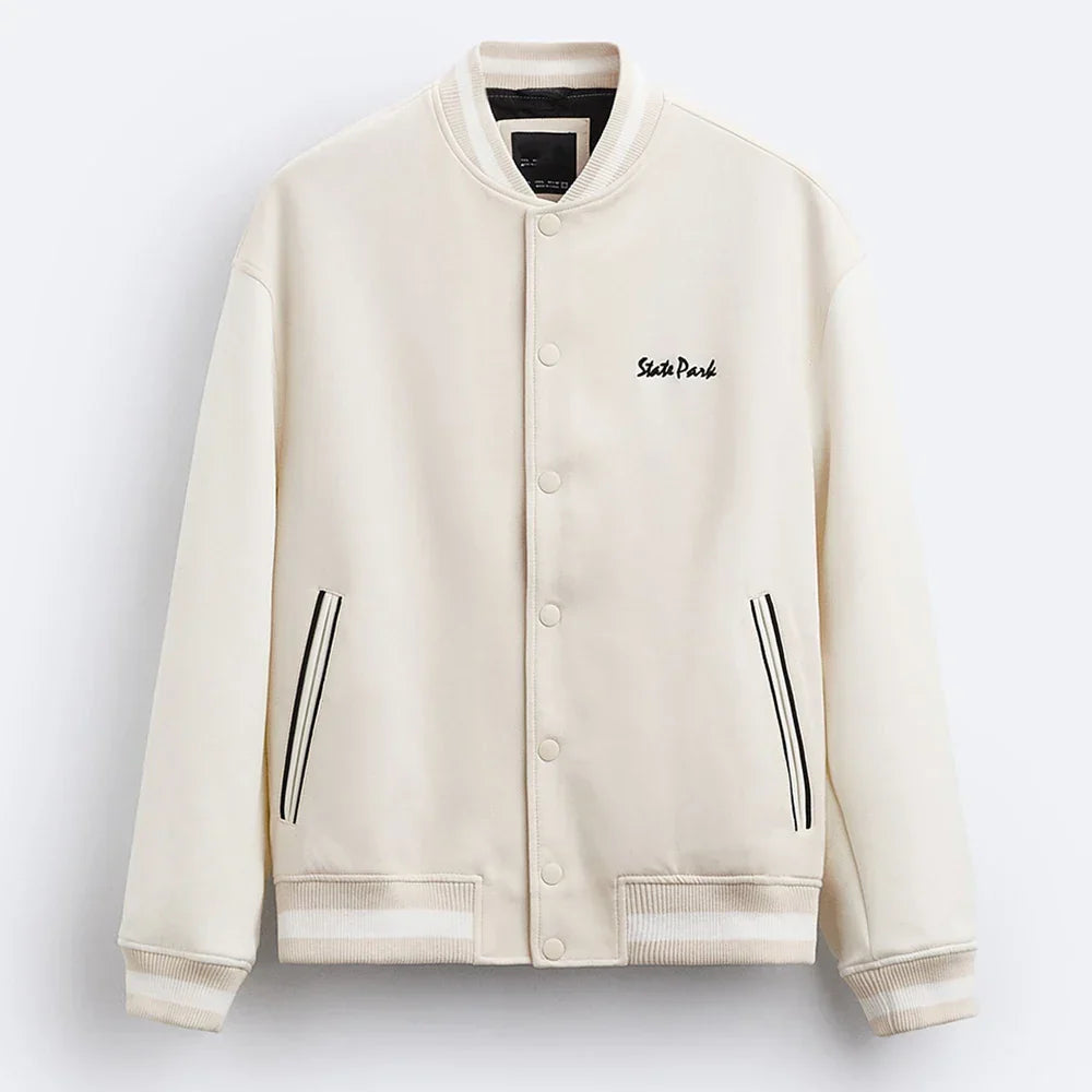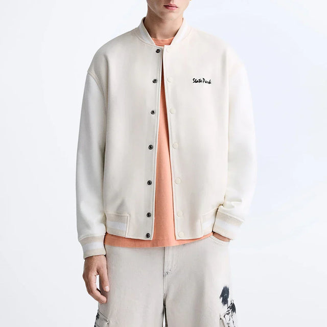 Mens Faux Suede Embroidered Baseball Jacket Autumn Winter - Beige / XL / VIP Price is backordered and will ship as soon as it is back in stock.