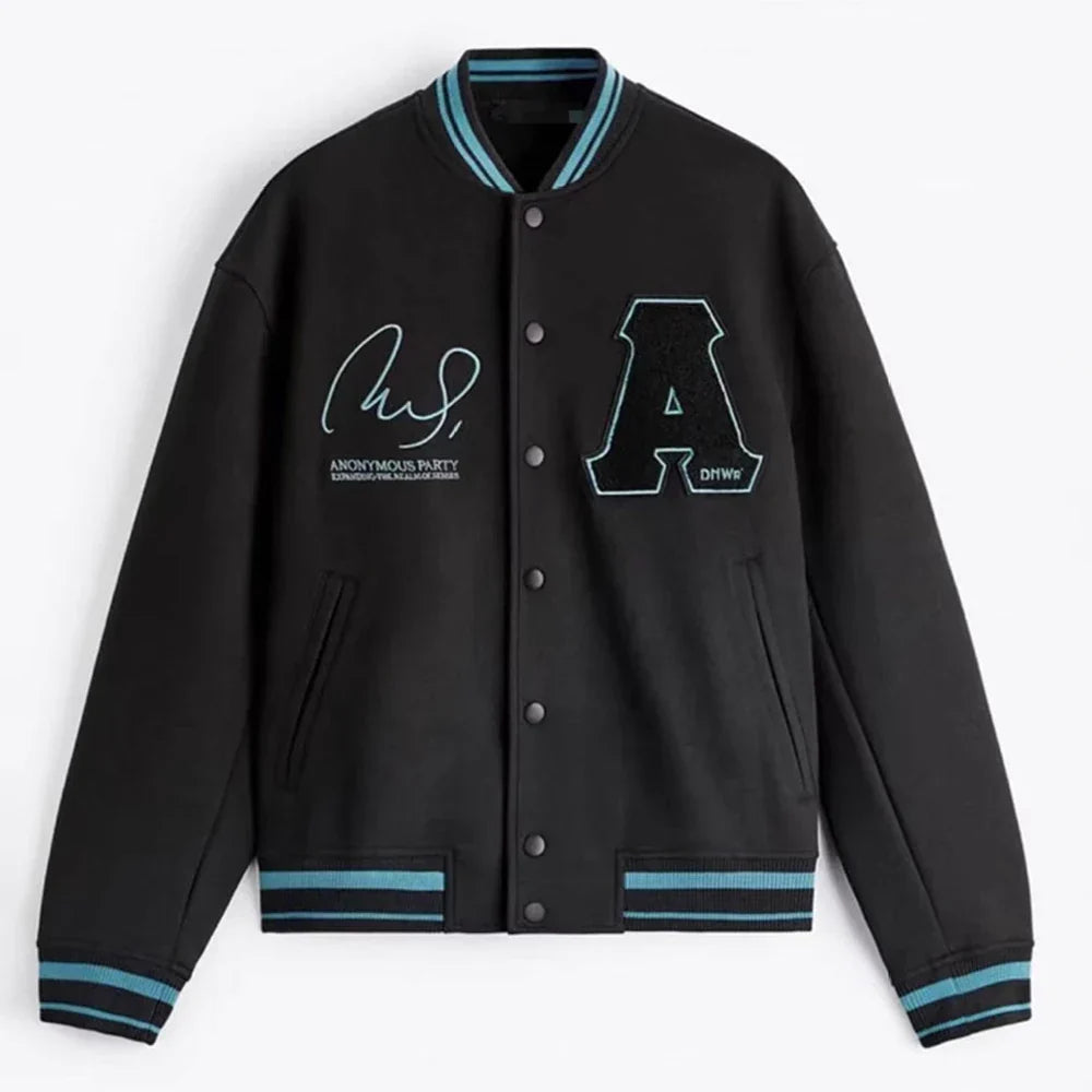 Mens Faux Suede Embroidered Baseball Jacket Autumn Winter