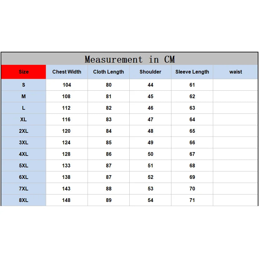 - Size : S M L XL XXL 3XL 4XL 5XL 6XL 7XL 8XL