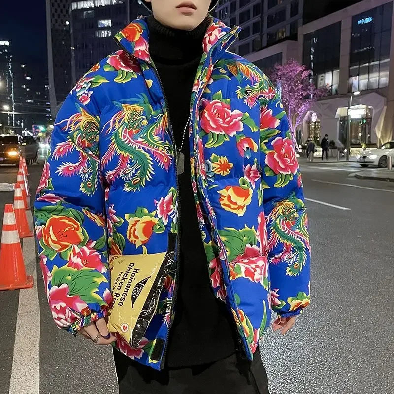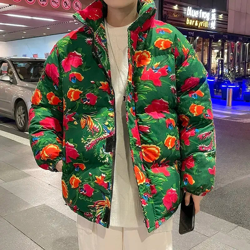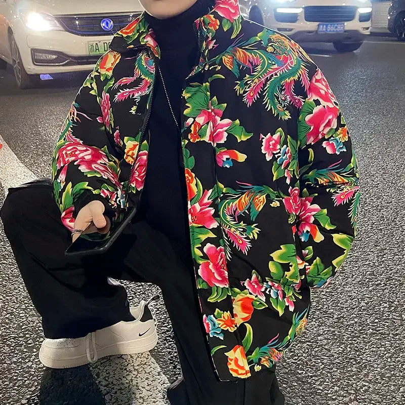 Northeast Flower Printed Thickened Cotton-padded Jacket Couple Chinese