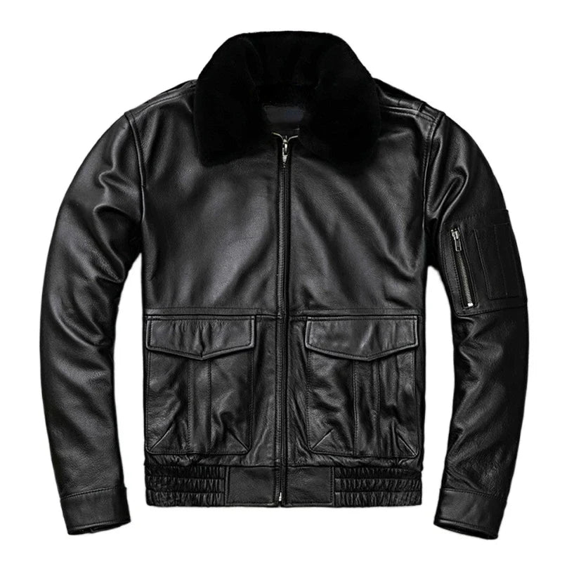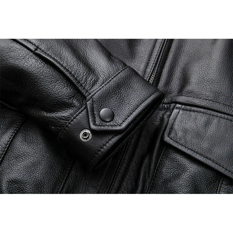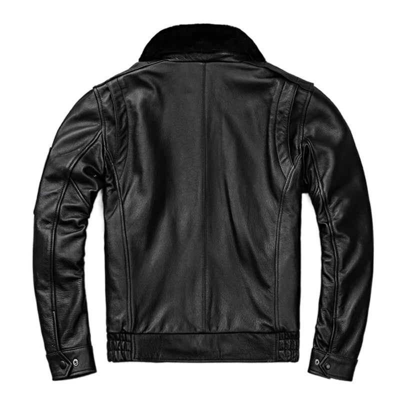 Removable Natural Fur Collar Genuine Cow Leather Jacket - Black / S / CHINA is backordered and will ship as soon as it is back in stock.