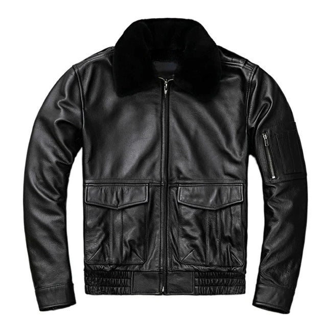 Removable Natural Fur Collar Genuine Cow Leather Jacket