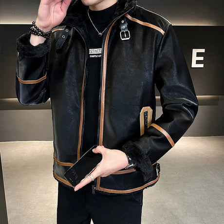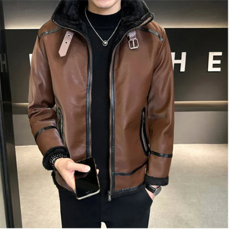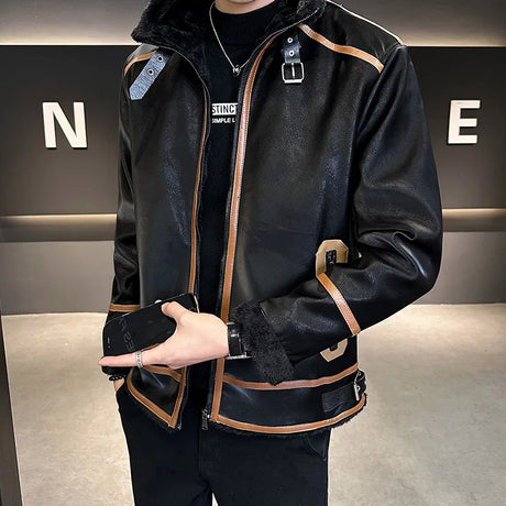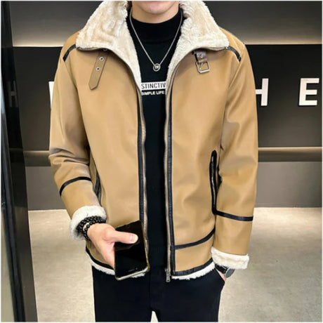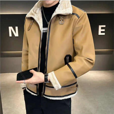 Green Ruffian Jacket for Men Lamb Wool Thickened