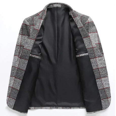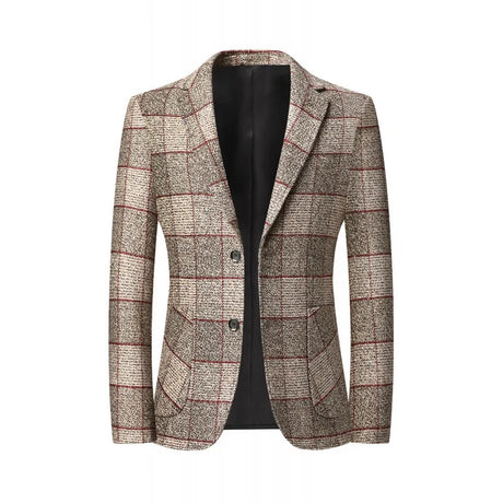 Herringbone Suit Jackets Men Tweed Wool Blend Trench