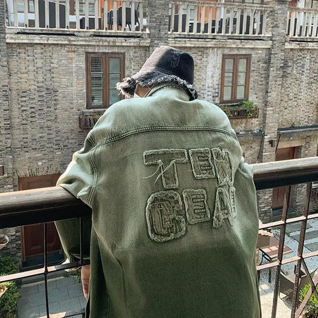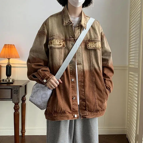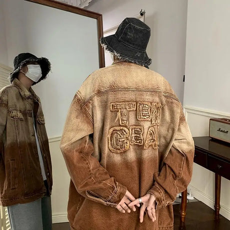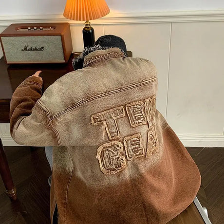 Gradient Embroidered Jacket Man's Retro Water Washing Old