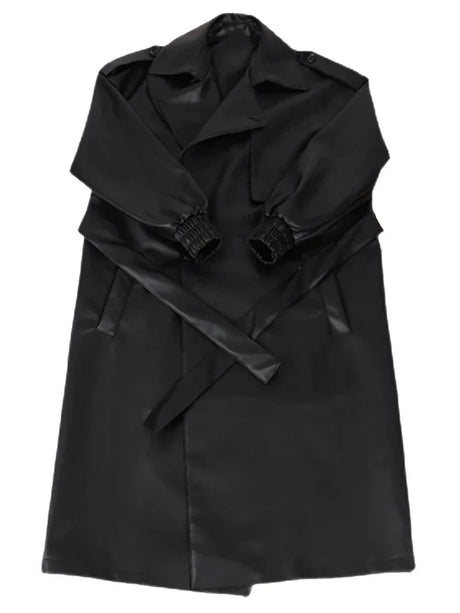 Mauroicardi Spring Autumn Long Black Oversized Faux Leather