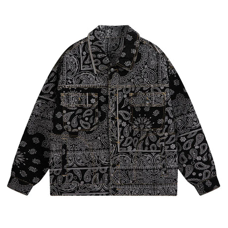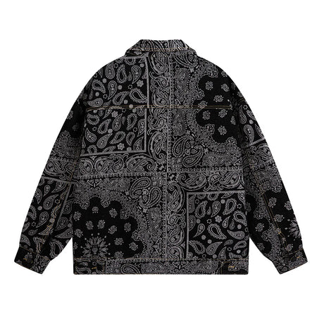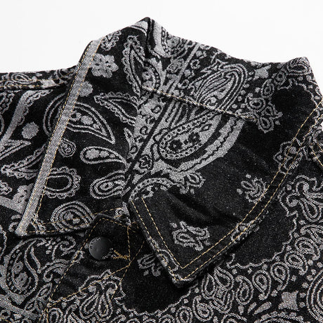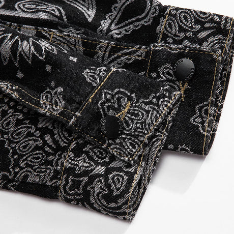 Men Paisley Bandana Print Denim Jacket Streetwear Pattern