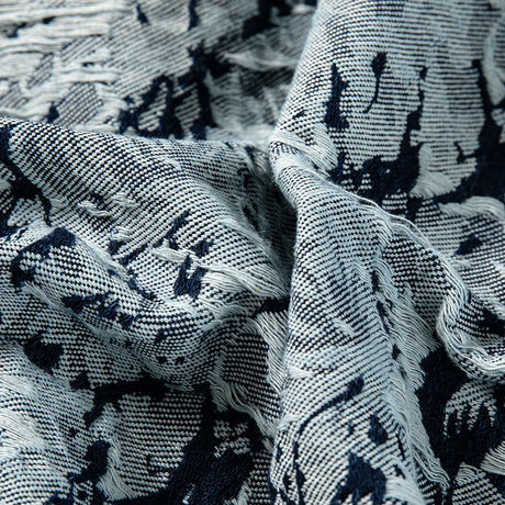Men Ripped Distressed Denim Jacket Flower Jacquard Weave