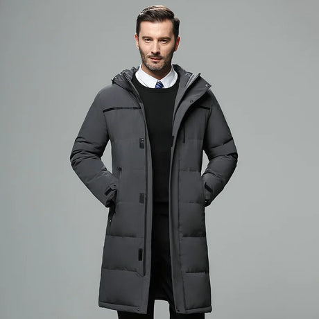 Men Long Down Jackets Warm Parkas Hooded Casual