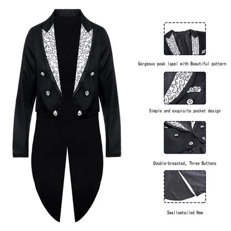 Men's Tuxedo Suits Set Classic Formal Tailcoat Tuxedo