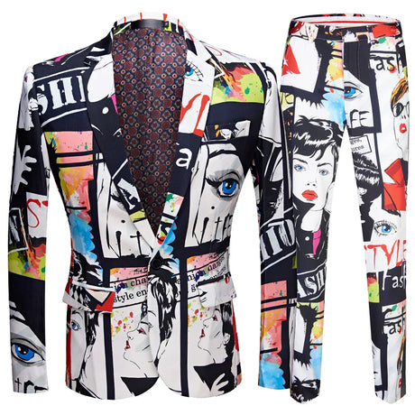 Mens Fashion Print 2PCS Set Casual Plus Size