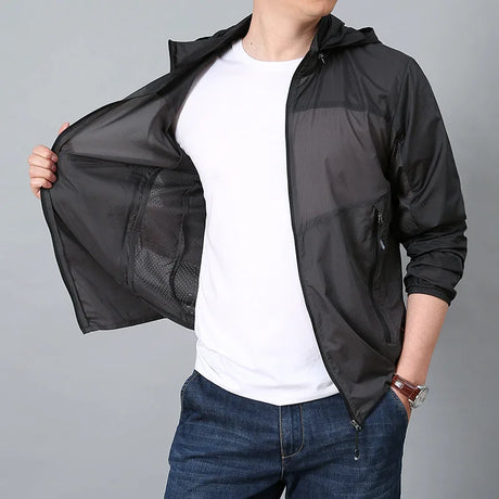 Mens Ultra Thin Jacket Lightweight Hooded Sun-protection Coat