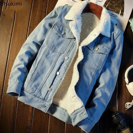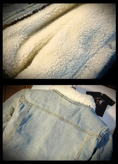 New 2024 Men's Warm Denim Jackets Fashion Men