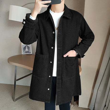 Mid-length Denim Windbreaker Jacket Men Spring Autumn Casual