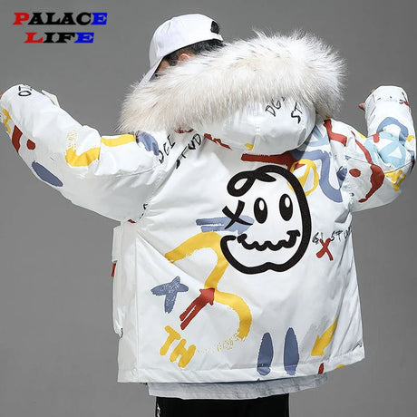 Hipster Winter Down Jacket Men Cartoon Little Devil