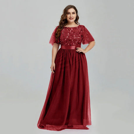 Women's Plus Size Mesh A-Line Sequin Embroidery Evening