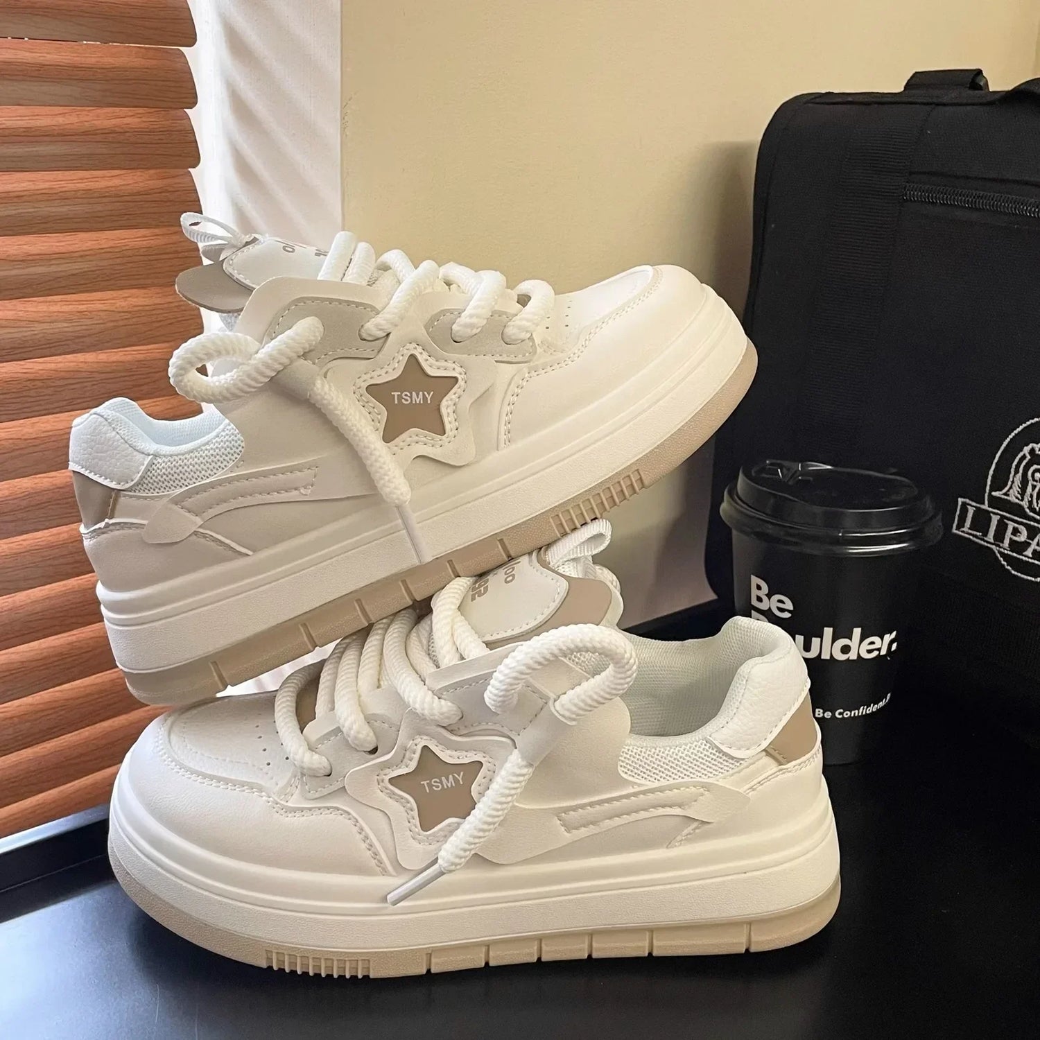 Women Platform Sneakers Star Design Lace Up Skateboard Flat Outdoor Comfortable Running Sports Shoes Tennis Jogging Sneakers