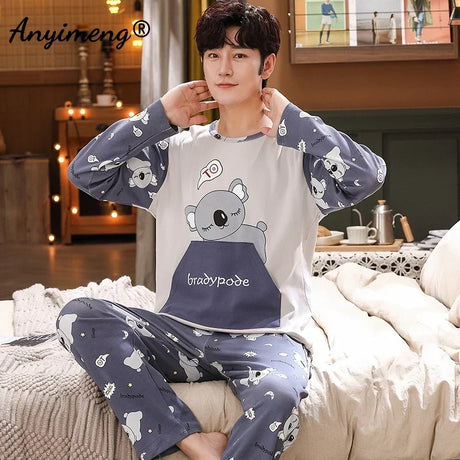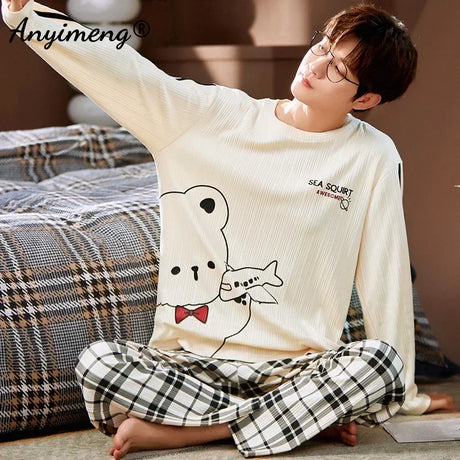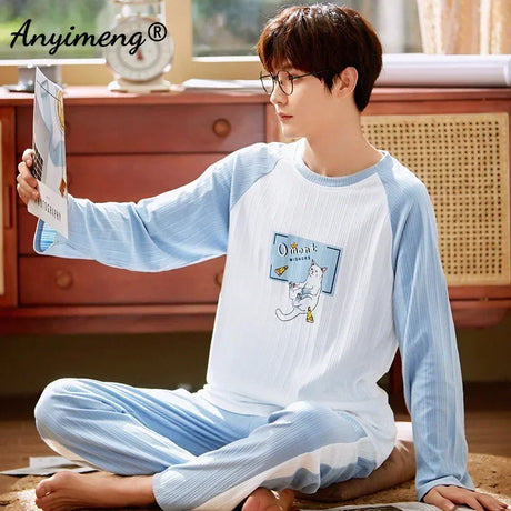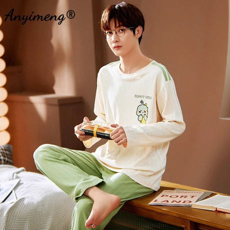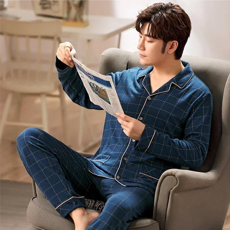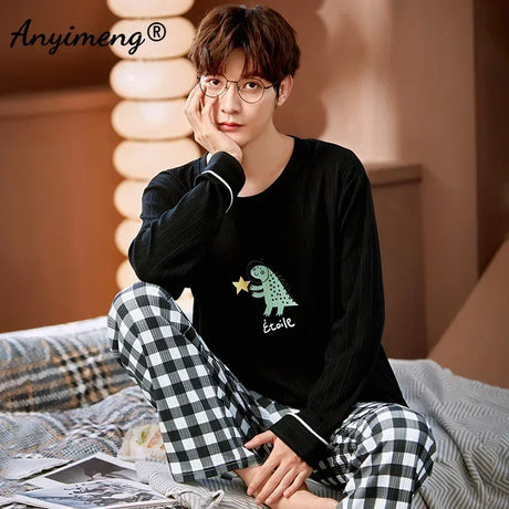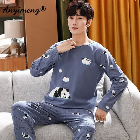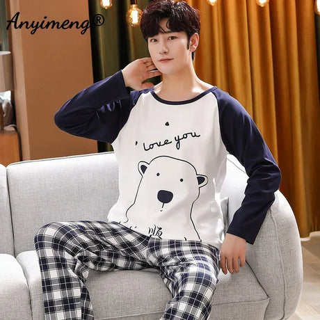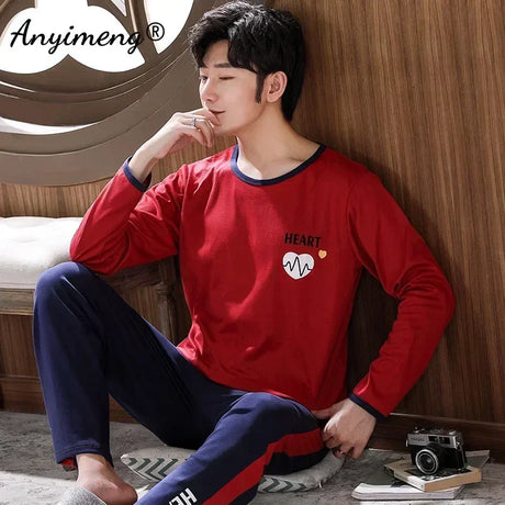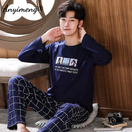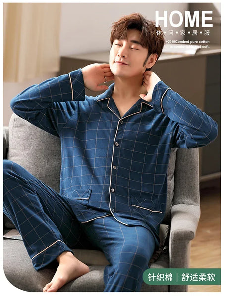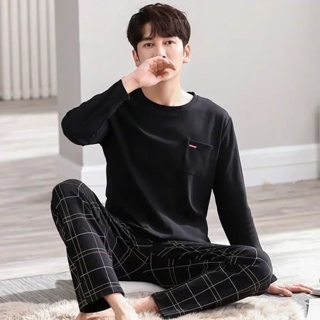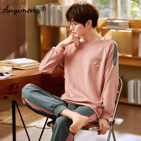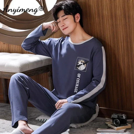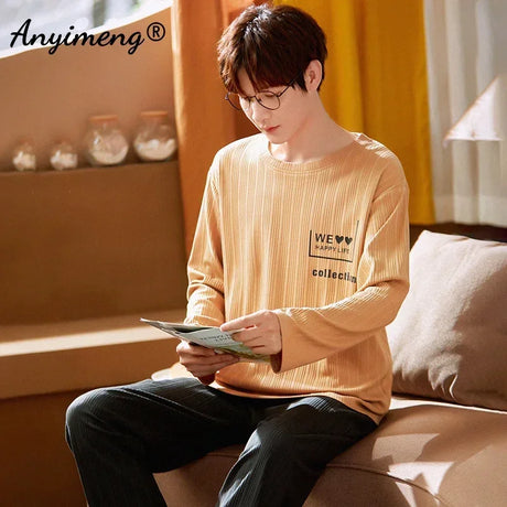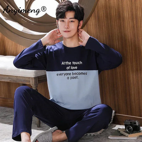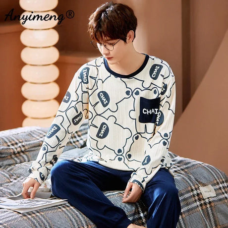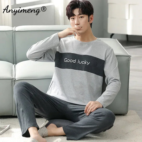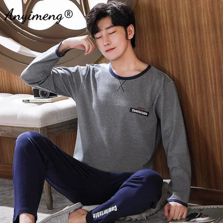 2024 Men's Pajama Sets Simple Sleepwear Long Sleeve