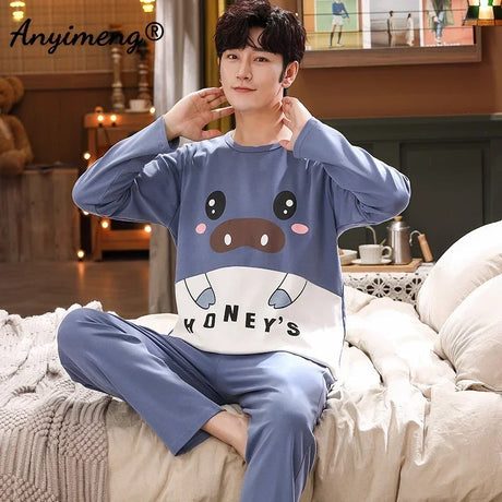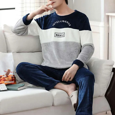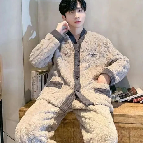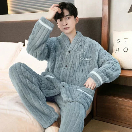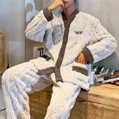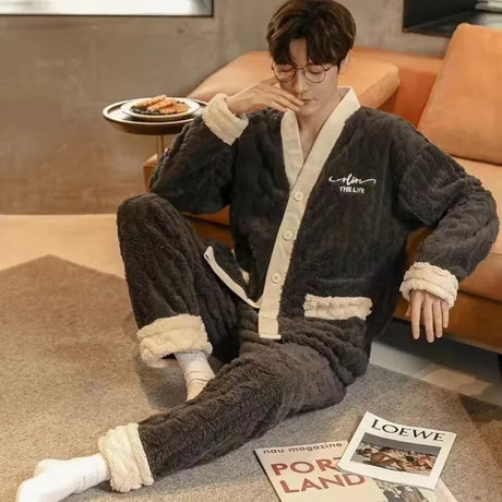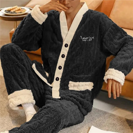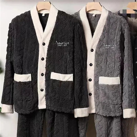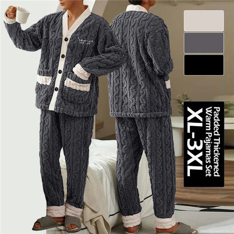 2024 Men's Warm Pajama Sets Autumn Winter Thick