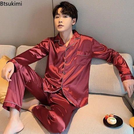 Men's Casual Pajamas Sets Oversized Silk Mens Pajama