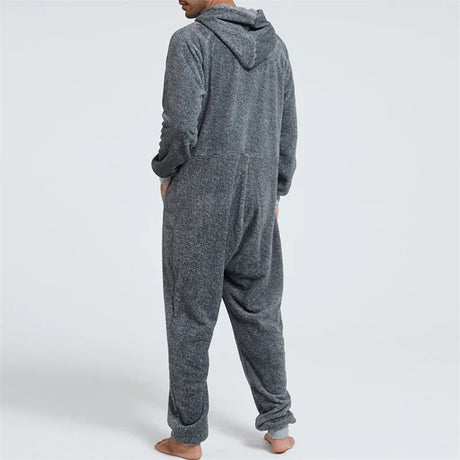 Men's Hooded Jumpsuit Pajamas Long Sleeve V Neck