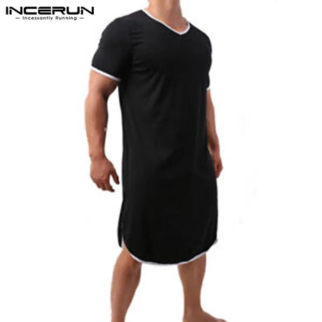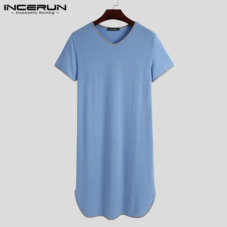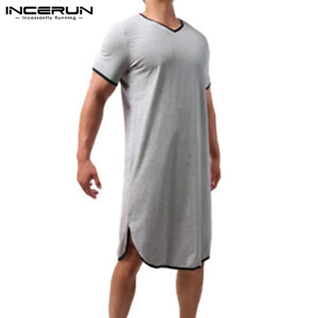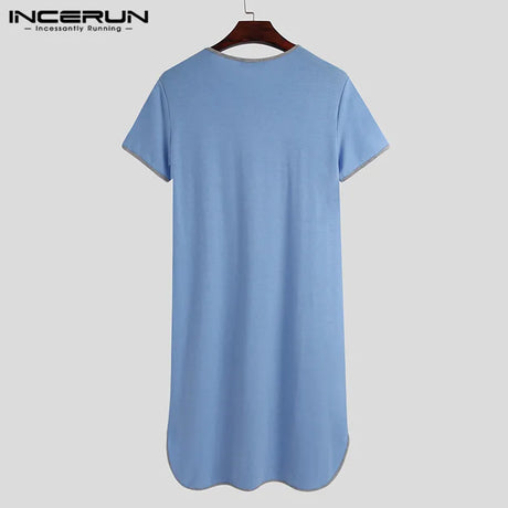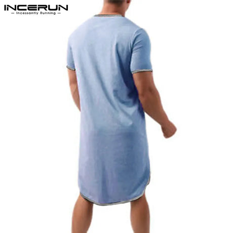 Fashion Men's Loose Sleepwear Casual Solid Nightgown INCERUN