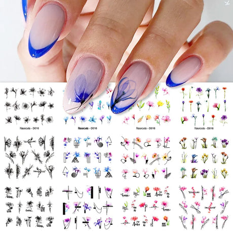 12 Designs Nail Stickers Set Mixed Floral Geometric