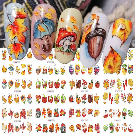 12pcs Hedgehog Animal Nail Water Stickers Pine Cones