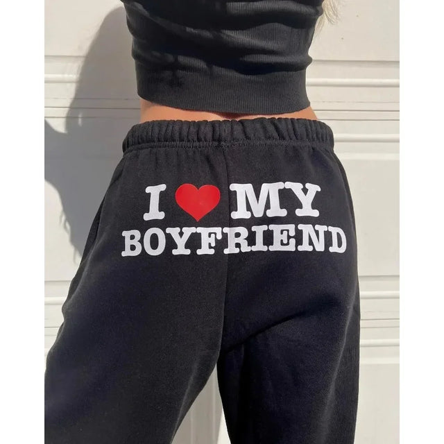 I Love My Boyfriend Printed Sweatpants Y2k High