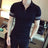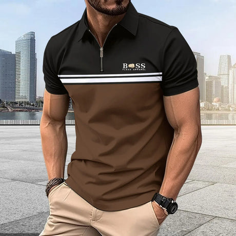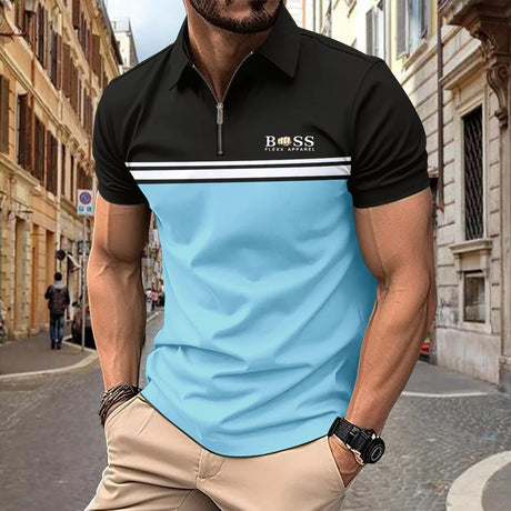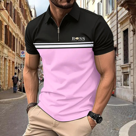 Men's Fashion Solid Short Sleeved Striped Lapel Polo