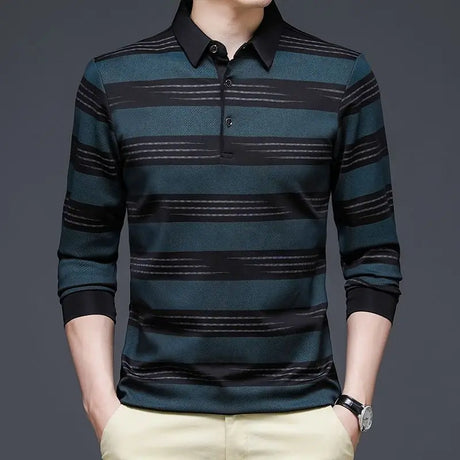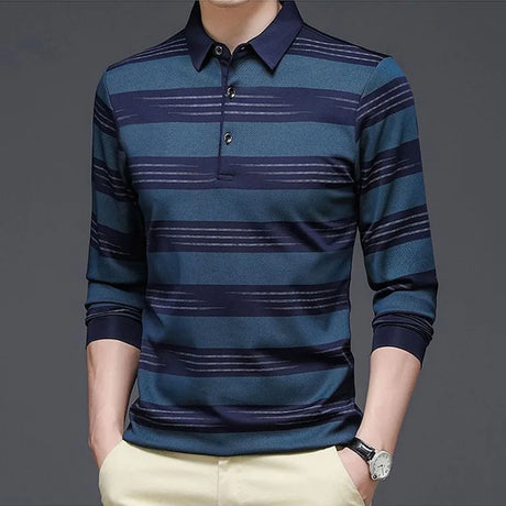 Spring Autumn Men Striped Long Sleeve Polo Shirts